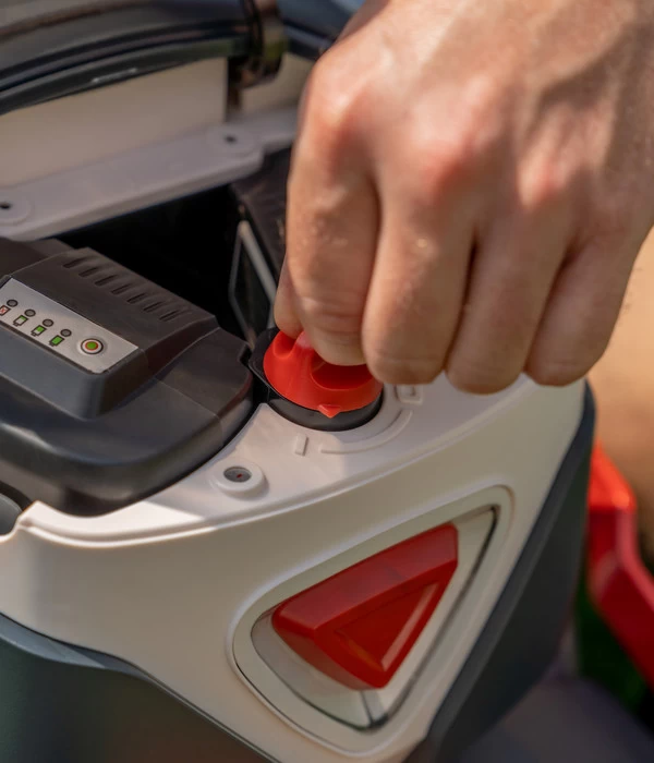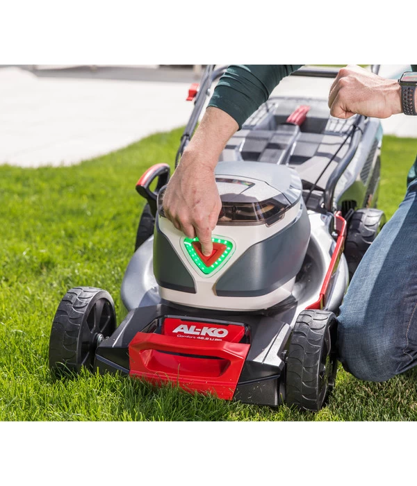Damit Sie sofort mit dem Mähen loslegen können, erhalten Sie beim Akku-Rasenmäher 46.2 LI SP-W Comfort einen leistungsstarken Akku und ein passendes Ladegerät mitgeliefert. Den Ladestand können Sie stets im Cockpit über den smart Button im Blick behalten. Oder Sie koppeln das Gerät mit der AL-KO InTouch-App und erhalten dort neben der verbleibenden Kapazität auch weitere nützliche Informationen wie Wartungsintervalle oder Bedienhinweise. Worauf warten Sie? Bestellen Sie noch heute den Akku-Rasenmäher 46.2 LI SP-W Comfort von AL-KO!