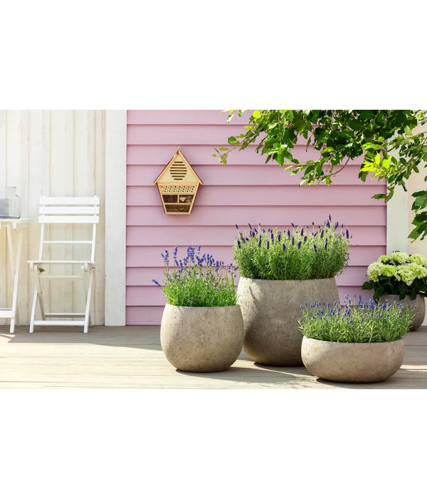 Trotz seiner Solidität und Widerstandskraft ist dieser runde Blumentopf aus Leichtbeton leicht und einfach zu verrücken oder zu tragen. Damit eignet er sich bestens für empfindliche Pflanzen, denen Sie im Sommer das frische Sonnenlicht draußen gönnen möchten, die im Winter aber nach Drinnen geholt werden müssen. Dafür ist nun kein anstrengendes Schleppen mehr nötig und Sie Ihre Pflanzen können mühelos umziehen.