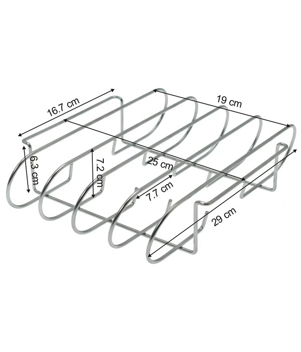 Der Dehner Rippchenhalter besteht aus robustem Edelstahl und kann nach der Benutzung schnell gereinigt werden. Stellen Sie den Halter einfach in die Spülmaschine. So kann er bald wieder zum Einsatz kommen und verbleibt dank seiner rostfreien Oberfläche stets in hervorragendem Zustand. Ihr neuer Halter von Dehner erweist sich darüber hinaus als flexibel: Drehen Sie ihn beispielsweise um und nutzen Sie ihn als Bratenkorb, um das Menü bei der nächsten Grillfete um eine Leckerei zu erweitern. Erwerben Sie den Rippchenhalter aus dem Hause Dehner und werten Sie Ihr Grillzubehör um ein erstklassiges Element auf, das sich übrigens auch als perfektes Geschenk für gute Freunde eignet, die sich genauso wie Sie an einem gepflegten Barbecue erfreuen.