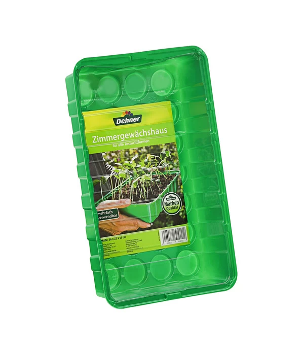 Das praktische Zimmergewächshaus von Dehner eignet sich mit den Maßen 36 x 22 x 13 cm optimal für Ihre Fensterbank! Es bietet genügend Raum für 28 Pflanzen, sodass auch einer größeren Anzucht nichts im Wege steht! Durch sein schlichtes Design macht das Dehner Zimmergewächshauses in jedem Zimmer eine gute Figur. So können Sie einfach nach dem geeignetsten Standort in Ihrer Wohnung oder Ihrem Haus suchen, um die bestmögliche Keimung der Pflänzchen zu erreichen.