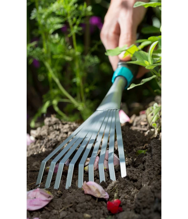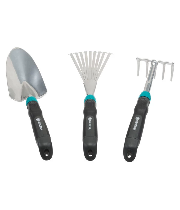 Wenn Sie auf der Suche nach nützlichen, die Beetpflege erleichternden Gartenwerkzeugen sind, stellt das GARDENA Comfort Kleingeräte Set die optimale Wahl dar. Es ist ansprechend verpackt und besteht aus einer Blumenkelle, einem Kleinbesen sowie einem Blumenrechen, sodass Sie bestens ausgestattet sind, um beispielsweise Ihre Rabatten, Pflanzkästen oder Hochbeete auf Vordermann zu bringen. Mithilfe der handlichen Geräte können Sie unter anderem das Erdreich auflockern, Blumen setzen, Laub harken oder Unkraut jäten. Als besonders vorteilhaft erweist sich dabei der komfortable ergonomische Griff der drei praktischen Helfer, die dank dieses Ausstattungsmerkmals gut in der Hand liegen – eine wichtige Voraussetzung für eine effektive Arbeit im Garten oder auf dem Balkon, für den das Comfort Kleingeräte Set von GARDENA übrigens besonders geeignet ist. Denn es trägt dazu bei, dass Sie trotz eines möglicherweise eher überschaubaren Raumangebots auf nützliche Gerätschaften nicht verzichten müssen.