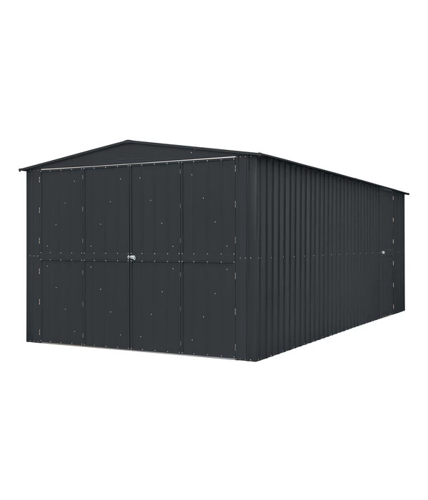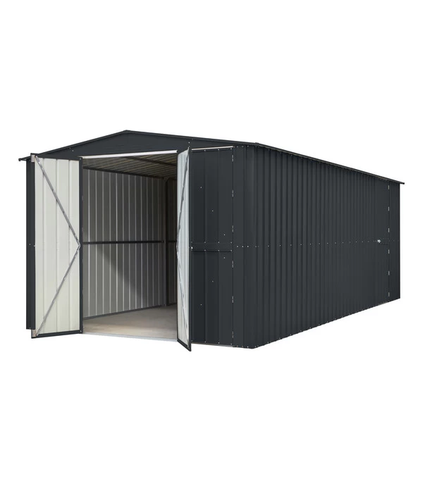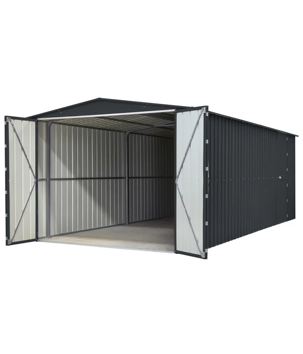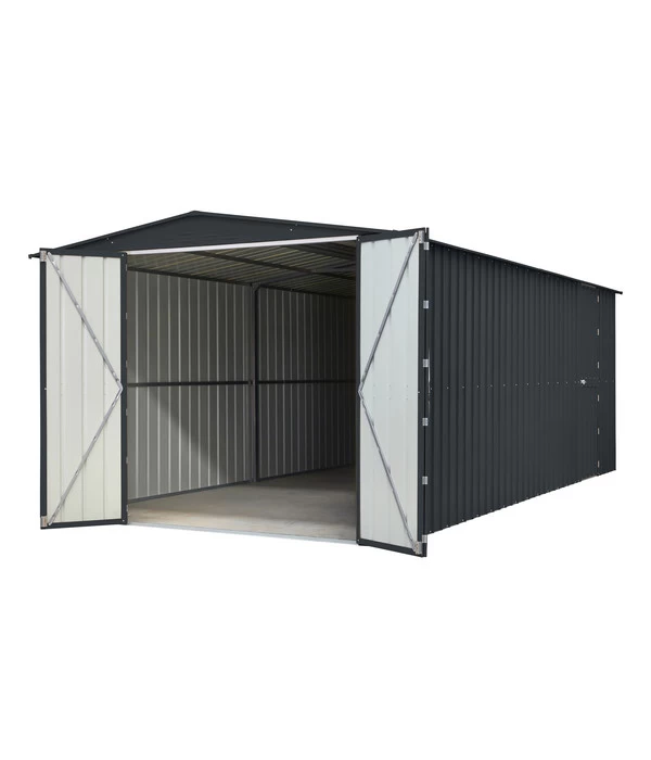 Sie würden den herumliegenden Werkzeugen, Spielzeugen und geparkten Fahrrädern in Ihrem Garten gerne einen festen Ort zuweisen? Dann ist das Globel Metallgerätehaus Spacer 1015 die perfekte Lösung für Sie. Es bietet genügend Stauraum für viele Gegenstände, die Sie gerne verstauen wollen. Auch ein Sitzrasenmäher, die Terrassenmöbel und ein Hochbeet finden hier ihren Platz, an dem sie niemanden stören oder optisch unangenehm auffallen. Dank der praktischen frontalen Faltschwingtüren haben Sie jederzeit kinderleicht Zugang zu Ihrer großen Premium-Lagerstätte, was das Verstauen und wieder Herausholen super einfach macht.