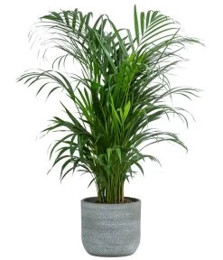 Wie wird eine anmutige Pflanze wie die Goldfruchtpalme in Keramik adäquat präsentiert? Richtig: Im passenden Übertopf. Diese Palme nimmt Ihnen die Suche danach ab und bringt ihr Keramikgefäß gleich mit. Das lässt in puncto Form und Farbe keine Wünsche offen, wirkt äußerst dekorativ und edel, lässt dank der dezenten Farbgebung jedoch der Pflanze den optischen Vortritt.