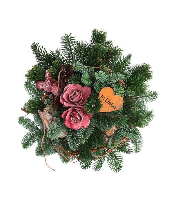 Mit dem Grabstrauß in Liebe haben Sie einen stimmungsvollen Grabschmuck entdeckt, der mit seinem Durchmesser von ca. 30 cm sehr gut auf ein Einzelgrab passt. Sie möchten noch ein bisschen mehr tun? Dann stellen Sie einen liebevoll gestalteten Engel aus Stein dazu, der Trost spendet und den ewigen Schlaf Ihrer Lieben bewacht. Und vielleicht ein Grablicht in Form einer stilvollen Laterne, die in dunklen Winternächten Licht spendet. So geschmückt wird die letzte Ruhestätte Ihres lieben Verstorbenen ein Ort der Erinnerung und des Trostes sein, den Sie immer gerne aufsuchen werden.