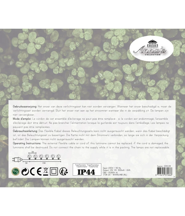 Nicht jede Lichterkette eignet sich für den Einsatz im Freien. Dieses Modell verfügt über einen Spritzwasserschutz und kann damit bedenkenlos im Garten, auf dem Balkon oder der Terrasse angebracht werden. Die großzügigen Maße werden Sie ebenfalls begeistern. Das 3 m lange Zuleitungskabel sowie die großzügigen Abstände von 100 cm zwischen den einzelnen Spots und auch die imposante Gesamtlänge (10 m) machen das Dekorieren zum Vergnügen. Zudem dürfen Sie sich über den geringe Stromverbrauch und die lange Haltbarkeit der LEDs freuen.