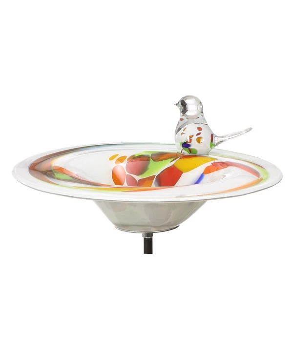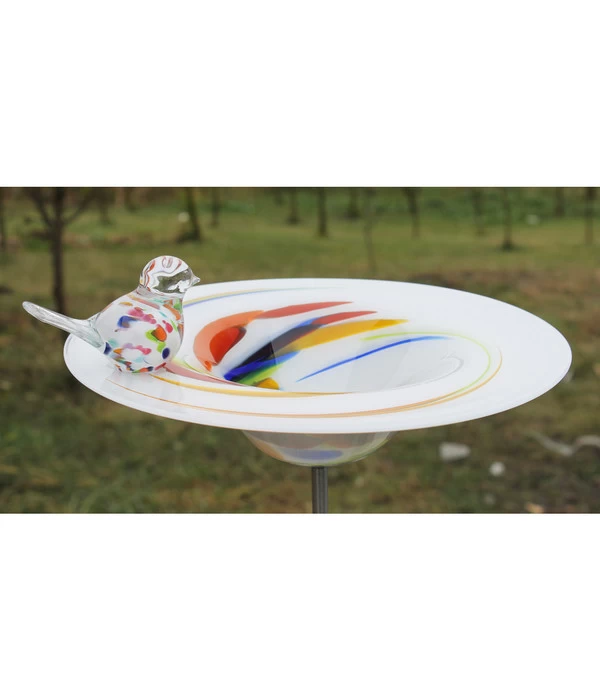 Vor allem im Sommer beschenken Sie Vögel den ganzen Tag mit ihrem wunderschönen Gesang. Geben Sie ihnen doch etwas zurück. Die Polczer Glas-Vogeltränke eignet sich dafür ideal. Gefüllt mit frischem Wasser dient sie den Vögeln nicht nur als Durstlöscher an heißen Tagen, sondern auch als wohltuende Badewanne. Die überaus edle Verarbeitung im farbenfrohen Design, wertet Ihren Außenbereich dezent auf und sorgt für ein optisches Highlight. Zudem ist die kleine Vogelfigur aus Glas, am Rande der Tränke, besonders niedlich. Es wirkt fast so, als würde sie geduldig auf ihre Vogelfreunde warten.
