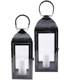 Sie suchen nach einem dekorativen Accessoire, mit dem Sie Ihre Umgebung verschönern können? Dann wird Ihnen die Laterne Mailand von Pajoma im 2er-Set sicher zusagen. Mit ihrem Dach im Hammerschlagdesign zieht sie die Blicke auf sich und zeigt auch gleich ihre hochwertige Ausführung. Die schlichte Metalllaterne lässt sich zudem problemlos mit anderen Dekoelementen kombinieren und fügt sich dank ihres zeitlosen Looks optimal in unterschiedliche Wohnambiente ein. Wenn Sie ihr Türchen öffnen, können Sie unkompliziert noch eine echte oder eine LED-Kerze hineinstellen, um für eine extra behagliche Atmosphäre zu sorgen.