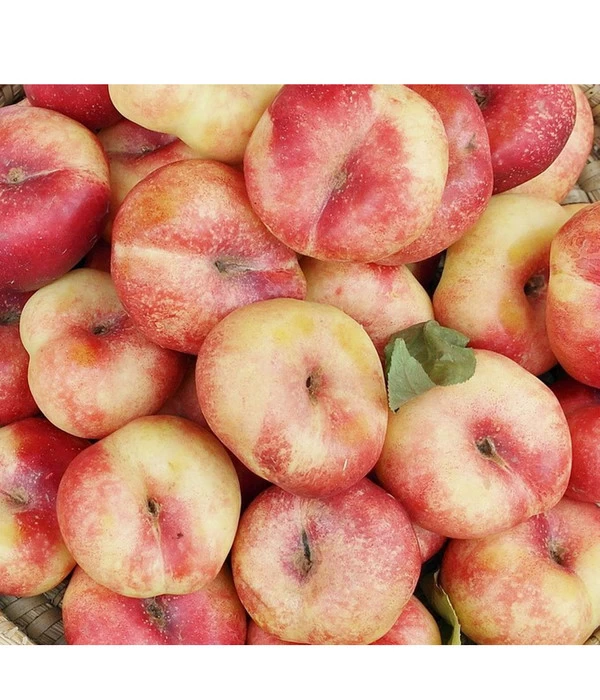Genießen Sie jetzt Nektarinen aus Ihrem eigenen Garten. Tellernektarinen sind flach und rund, eben wie ein Teller. Die Farbe reicht von gelb, über orange, zu rot, je nach dem wie viel Sonne die Früchte abbekommen. Das Fruchtfleisch ist kräftig gelb und saftig. Es besitzt außerdem keine Fasern. Der süße, aromatische Geschmack wird Sie sofort überzeugen. Die Pflanze besitzt einen hohen Zierwert. Vor allem im Frühjahr stellt sie alle anderen Pflanzen in ihren Schatten. Denn dann ist sie über und über mit rosafarbenen Blüten ummantelt. Ihre Gäste werden Augen machen, wenn sie diese Blütenpracht erblicken. Und bestimmt werden diese im Sommer gerne von den leckeren Früchten naschen. Sie sind sehr vielfältig, werden aber am liebsten frisch verzehrt. Sie können Marmeladen, Säfte oder Eis herstellen, aber auch als Kuchenbelag macht die Tellernektarine eine gute Figur.