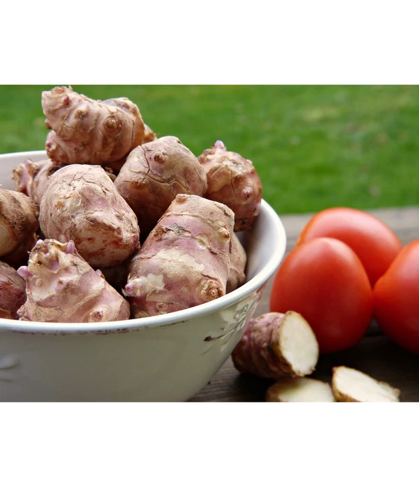 Die beste Pflanzzeit für die Erdartischocke ist von Ende März bis Ende April oder im Oktober und November. Wählen Sie einen sonnigen Standort mit einem humosen, leicht sandigen Boden und setzen Sie die Erdartischocke im Abstand von ca. 60 x 50 cm ein. Gelegentliches Düngen mit Kompost sichert eine reiche Ernte. Wuchern die Pflanzen zu stark, können Sie im Frühjahr überschüssige, kniehohe Triebe herausreißen. Ansonsten wachsen die Pflanzen ohne Ihr Zutun, bis Sie dann ab Spätherbst, wenn sich das Kraut braun färbt, die schmackhaften Erdartischocken ernten dürfen. Noch ein Tipp: Sie können Ihre Topinambur auch gut als dekorativen Sichtschutz an den Gartenzaun setzen.