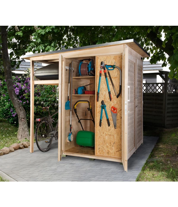 Maximaler Platz auf minimaler Fläche – das Gartenhaus Weka Garten [Q] Multi ist ein echtes Raumwunder und ideal für den Garten kleiner Größe geeignet. Im Gegensatz zu einem herkömmlichen Gartenhaus wird hier der Platz perfekt genutzt: Die individuell einstellbaren Fächer sind bequem von außen zugänglich, ein Unterstand bietet am Gartenhaus zudem Platz für Fahrräder oder größere Gartengeräte. Die maximale Fachhöhe beträgt 190 cm. Die großen, abschließbaren Flügeltüren erlauben einen komfortablen Zugriff auf die Fächer. Das Dach steht rund um 12 cm über. Deko und Zubehör sind nicht im Lieferumfang enthalten.
