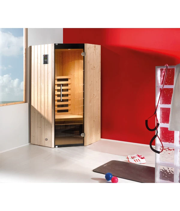 Es ist kaum zu glauben, aber wahr: Die Wärmekabine braucht nur ca. 1 Quadratmeter und bietet doch den vollen Entspannungsgenuss. Das Geheimnis des geringen Platzbedarfs liegt in der extrem kompakten Bauweise zusammen mit dem praktischen Eckeinstieg, so dass sie auch in kleinste Räume und Ecken gestellt werden kann. Weil es sich bei der Weka Infrarotkabine Tanilla Eck aber um ein Qualitätsprodukt des deutschen Markenherstellers Weka handelt, ist es mit dem gleichen Qualitätsanspruch gefertigt und dem gleichen Komfort ausgestattet wie zum Beispiel eine große Saunalandschaft. Außerdem lässt sich die Kabine in kürzester Zeit aufheizen, sodass Sie ohne lange Planung auch ganz spontan eine kleine Auszeit in der wohligen Wärme genießen können. Gönnen Sie sich einen besonderen Quadratmeter Wellness – mit der Weka Infrarotkabine Tanilla Eck!