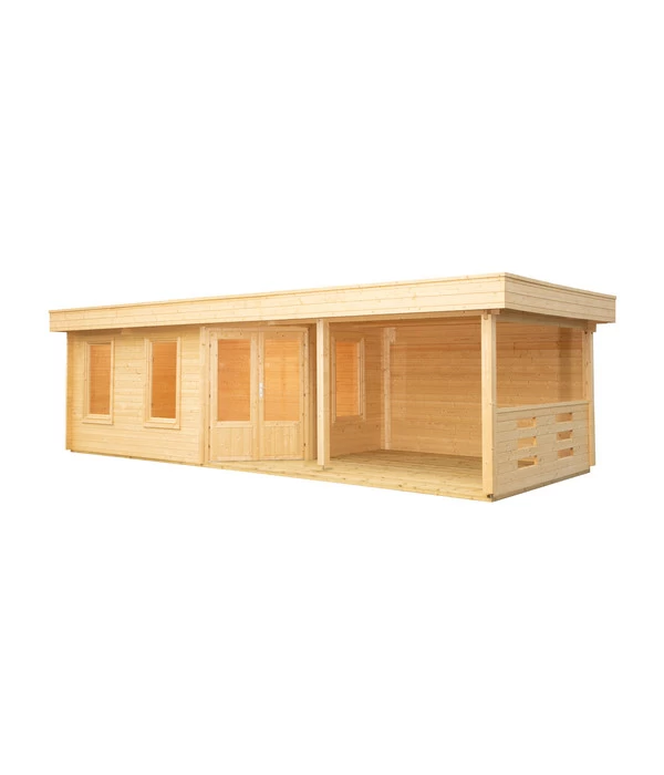 Das Wolff Finnhaus Gartenhaus Maja 40-B/1 wird in traditioneller Blockbohlenbauweise errichtet. Die Wände haben eine Stärke von 40 mm, Fußboden und Dach bestehen aus 18 mm dickem Massivholz. Alle Hölzer sind passgenau gesägt und genutet, so dass Ihnen der Aufbau leicht und schnell von der Hand gehen wird. Durch die Konstruktion des Flachdachs ist es leicht zu montieren und bietet eine hohe Stabilität. Zum Schutz vor eindringender Nässe empfehlen wir Ihnen eine hochwertige, selbstklebende Dachfolie auf Bitumenbasis. Am besten bestellen Sie die gleich zum Haus mit!