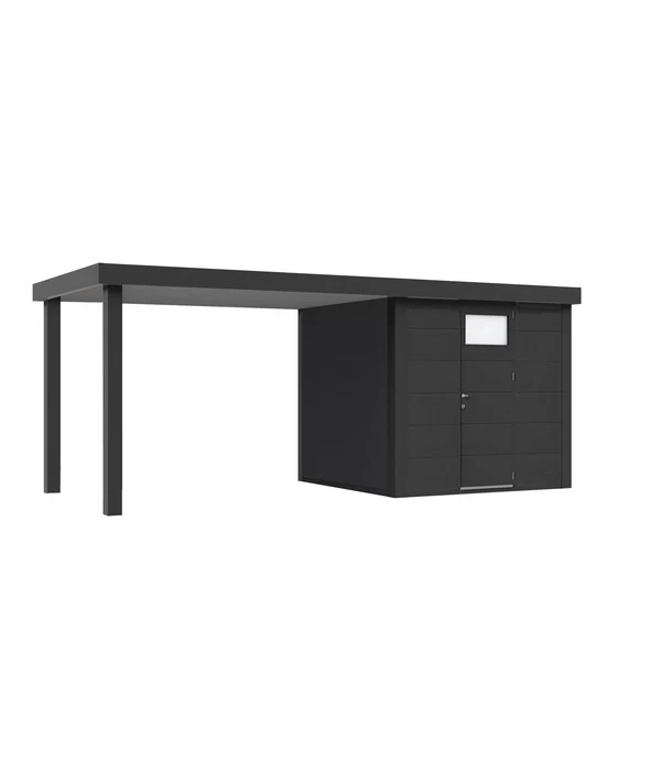 Ein Gerätehaus soll endlich die erwünschte Ordnung in Ihren Garten bringen, aber nach Ihrem Geschmack darf es eigentlich noch ein bisschen mehr als das sein? Dann wird Ihnen bestimmt das Wolff Finnhaus Metallgerätehaus Eleganto 2424 zusagen. Denn das begeistert mit einer stattlichen Verlängerung seines modernen Flachdachs. Und da entstehen bestimmt gleich die verschiedensten kreativen Nutzungsmöglichkeiten vor Ihrem geistigen Auge. Fahrräder unterstellen oder Grill darunter schieben gehören dabei zu den eher langweiligen Ideen, richtig? Sie richten die 284 cm Seitendachlänge im Geiste bestimmt schon mit zwei Relaxliegen, kleinen Tischchen und coolen Drinks ein oder arrangieren Ihre Gartensitzgruppe, um fürs nächste Grillgelage gewappnet zu sein. Natürlich können Sie den überdachten Bereich auf der linken Gebäudeseite auch mal so und mal so nutzen. Überlegen Sie also am besten schon einmal, wo Ihr neues Wolff Finnhaus Metallgerätehaus Eleganto 2424 inkl. Seitendach links am besten in Ihren Garten passt, und dann schreiten Sie zur Tat!