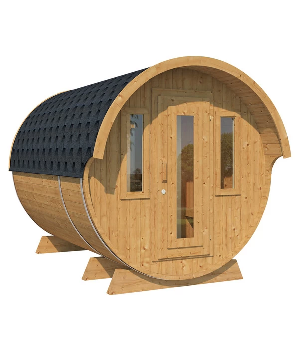 Keine andere Bauform eines Saunahauses bietet Ihnen eine so hohe Luft- und Wärmezirkulation wie eine Fasssauna. Denn während in der klassisch eckigen Gartensauna viele Winkel die Luftströme ablenken und unterbrechen, passiert dies in dem Wolff Finnhaus Saunafass 330 de luxe montiert eben nicht. Diese besondere Bauform gibt es schon lange in Finnland, der Heimat des klassischen Saunierens. Ein weiterer Vorteil ist die schnelle Beheizung, so dass die Fasssauna auch für spontane Saunagänge bestens geeignet ist.