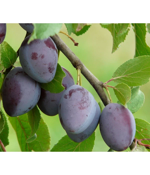 Wenn in Ihrem Garten bald die ersten dunkelblau-violetten Zwetschgen zwischen dem grünen Laub leuchten, wissen Sie und Ihre Familie: Jetzt beginnt die Zwetschgenzeit! Und diese verspricht immer ganz besondere Genüsse: ob frisch verzehrt, ob süß als Zwetschgenkuchen, Zwetschgen-Knödel, Kompott und Marmelade oder pikant als Beilage zu dunklem Fleisch und Wild – Zwetschgen lassen sich unglaublich vielseitig in der Küche verarbeiten. Wie gut, dass Ihre Zwetschge ‘Katinka‘ bekannt ist für ihre üppige Blüte und die reiche Ernte, mit der sie Sie sogar meist schon im ersten Jahr nach der Pflanzung beschenken wird! Die Früchte der Zwetschge ‘Katinka‘ haben ein grün-gelbes Fruchtfleisch mit einem herrlich süß-säuerlichen Aroma und lassen sich leicht vom Stein lösen. Kein Wunder, dass diese Züchtung aus Stuttgart-Hohenheim zu den besten, frühreifenden Sorten zählt.